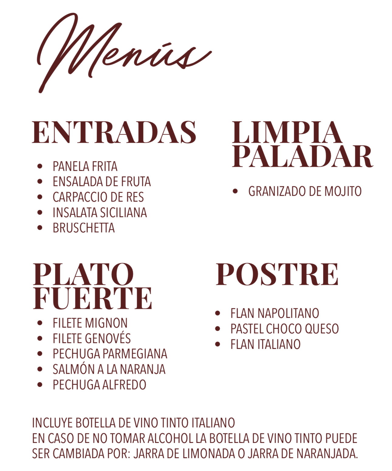 ✳️ Cena a 4 tiempos (Menú de su selección)